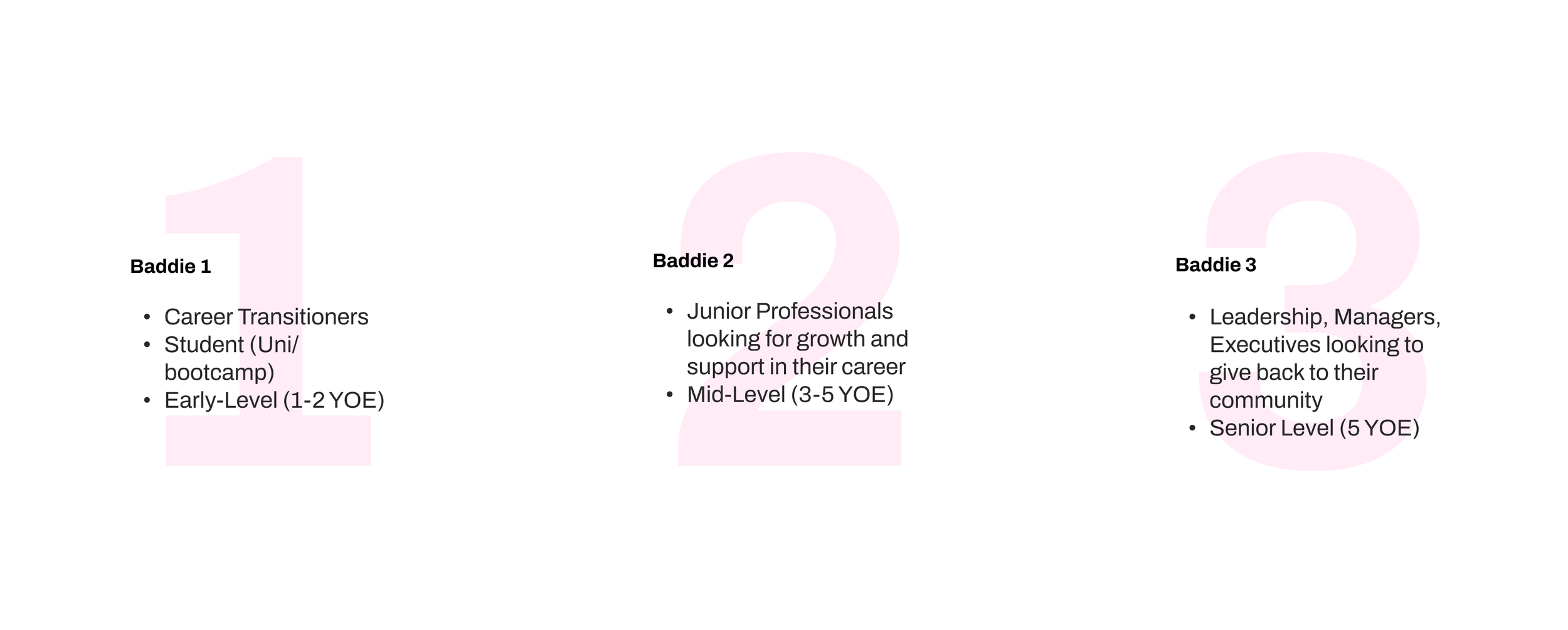 I also worked alongside a UX Writer to ensure the copy in my designs aligned with Baddies in Tech’s Writing Style Guide and was consistent across all pages.